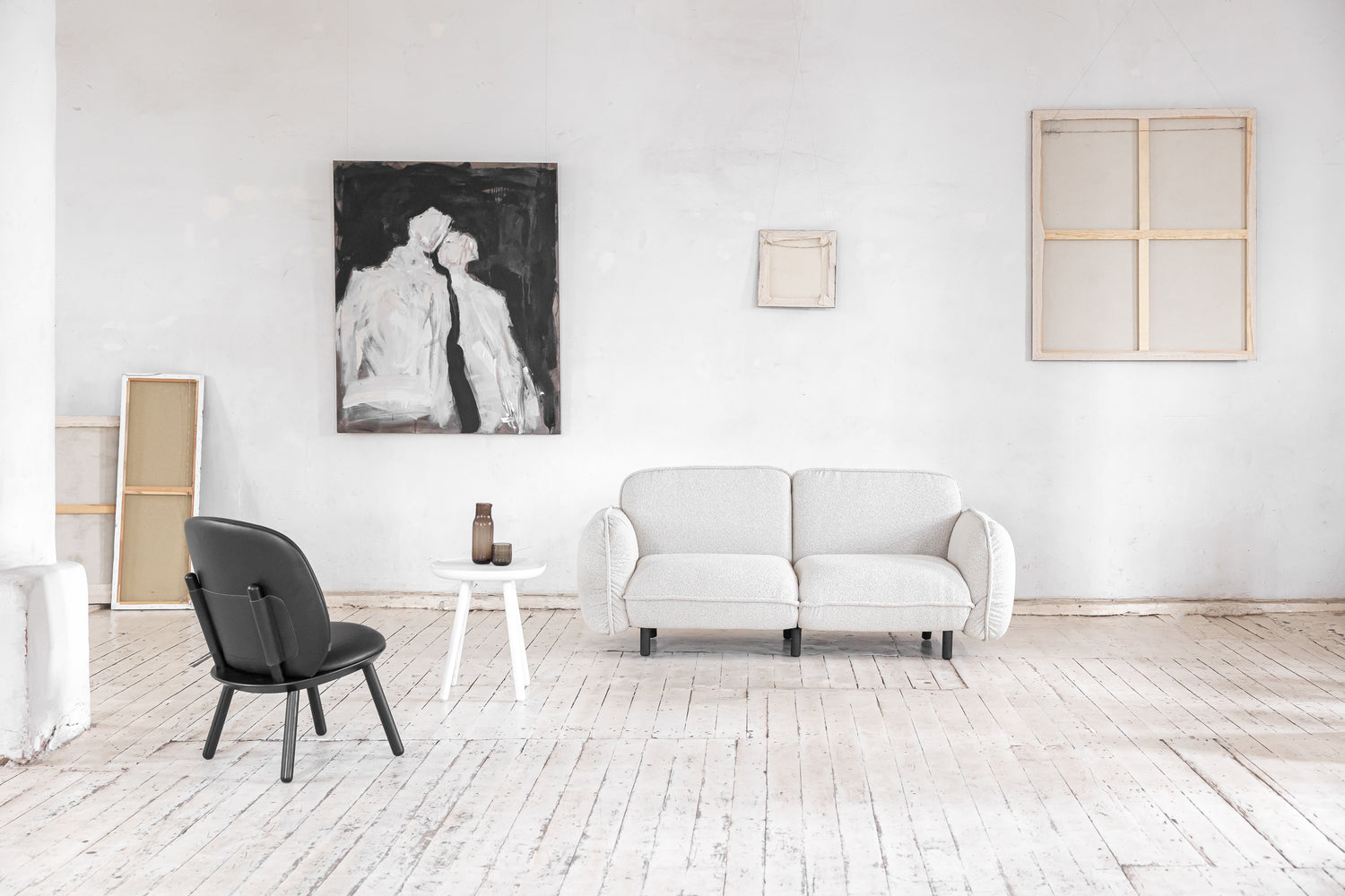Le canapé « Bean » est disponible en cinq couleurs : bleu roi, vert mousse, rouge bordeaux, gris béton et beige toujours élégante. De plus, le canapé dispose de deux coussins qui offrent un confort optimal.
