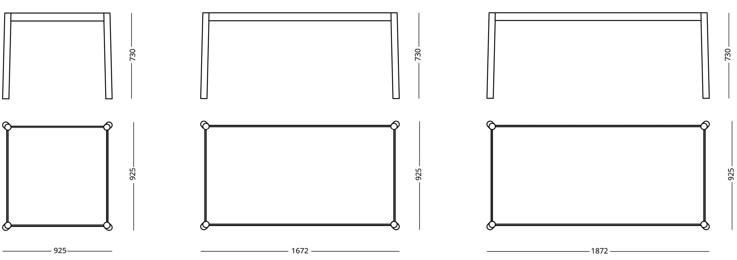 „Citizen“ valgomojo stalas yra trijų dydžių — kvadratinis, taip pat, mažesnis arba didesnis stačiakampis. Dėl to baldas gali būti lengvai pritaikomas įvairiems poreikiams bei interjerams — nuo kompaktiško buto iki erdvaus restorano ar viešbučio.