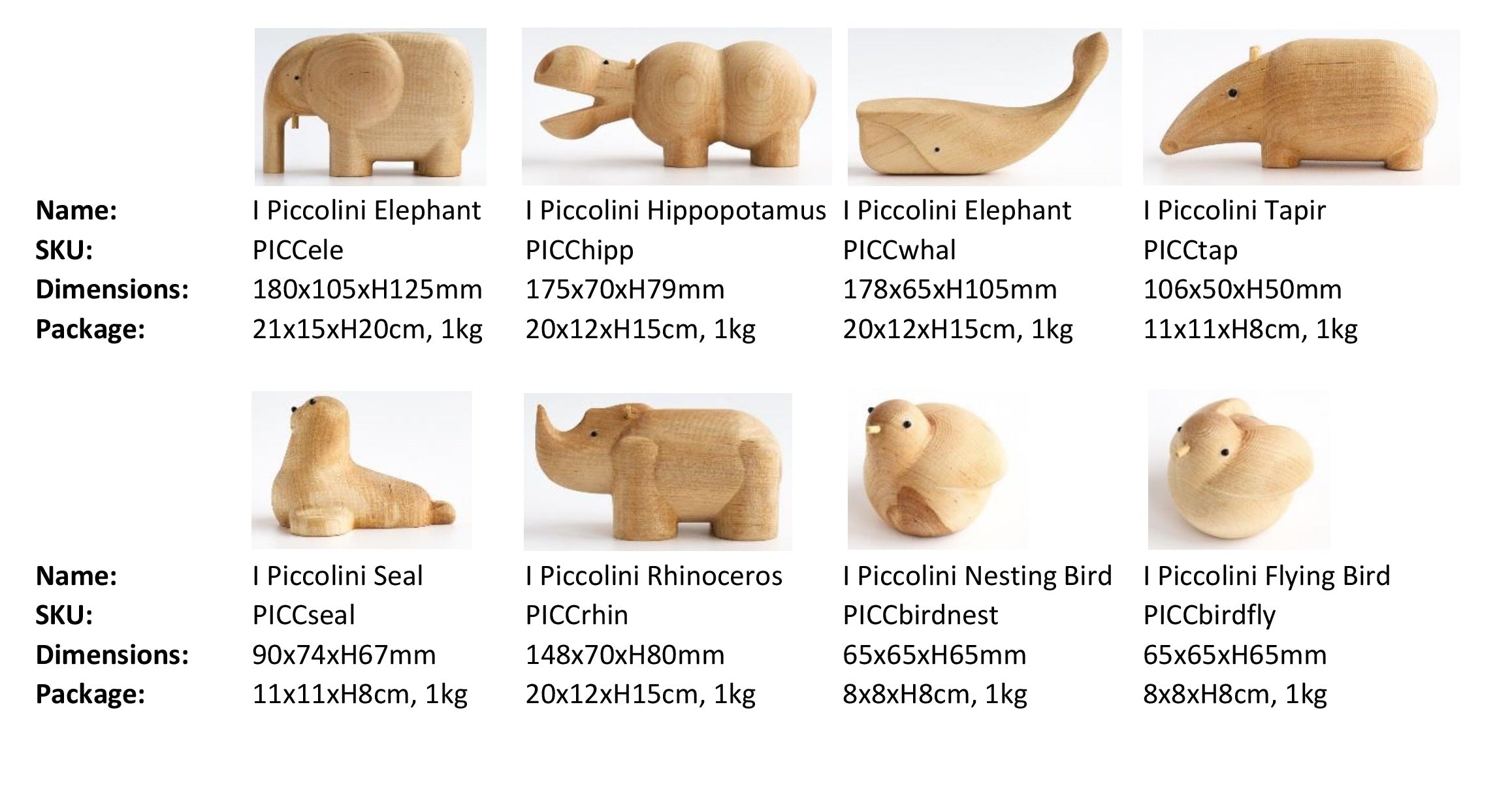 I Piccolini kolekcija gimė iš meilės gamtai ir laukiniams gyvūnams. Kiekvienas gyvūnas atstovauja skirtingą natūralią buveinę, pavyzdžiui, Antarktidą, Arkties jūrą, Afrikos savaną ir kt.