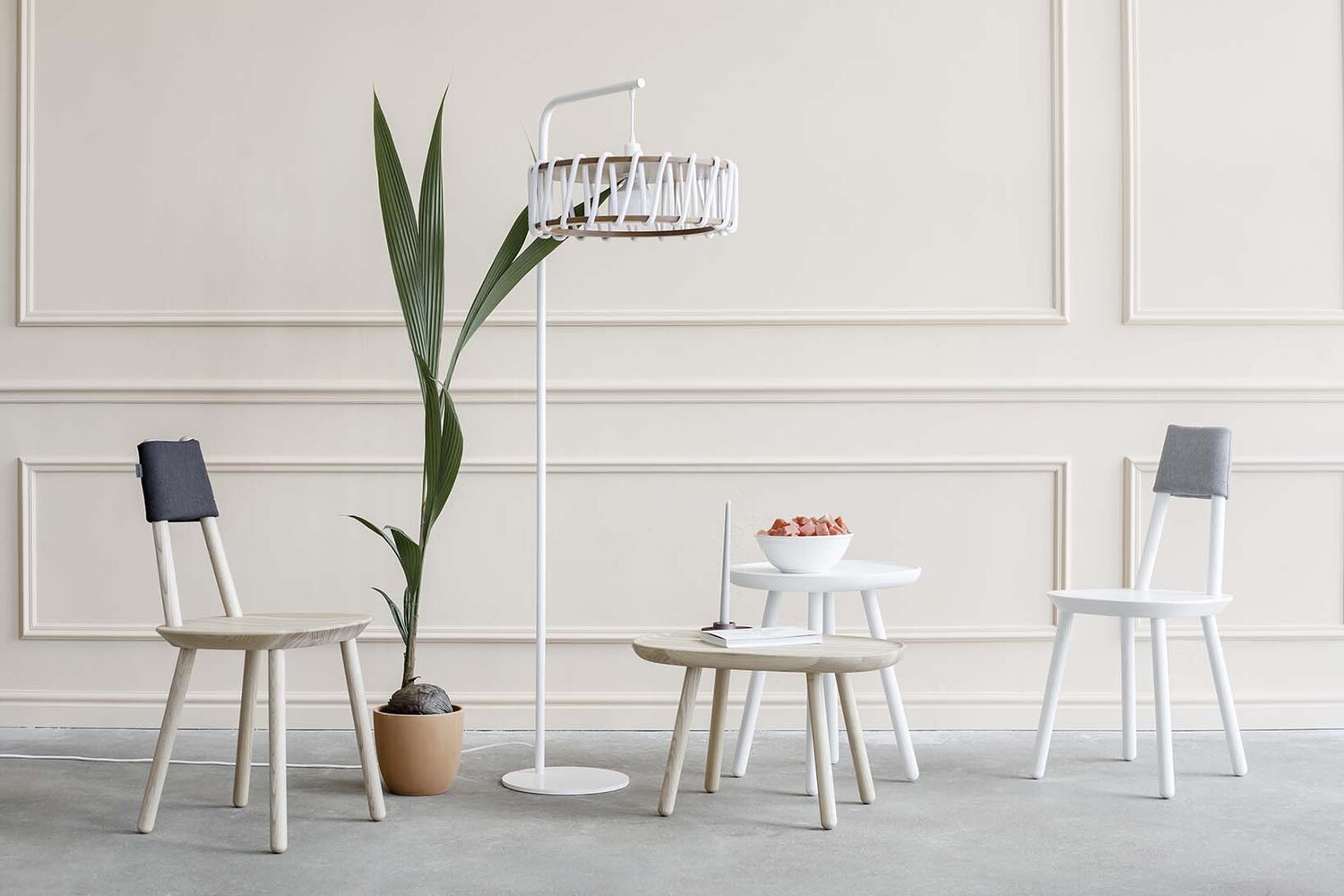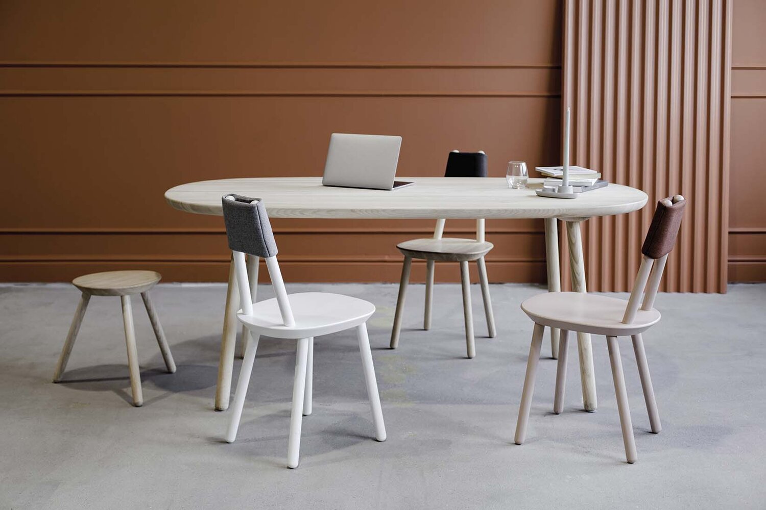 Ši žaisminga kėdė yra minimalizmo pavyzdys: iš uosio pagaminta sėdynė ir lengvai į ją įsukamos šešios vienodo ilgio kojytės. Šiam paprastumui pagaminti reikalingas preciziškas tikslumas: kiekviena detalė yra kruopščiai apgalvota, išskaičiuoti kojų įsukimo kampai – viskas suprojektuota taip, kad kėdė būtų proporcinga, ergonomiška ir užtikrintų geriausią sėdėjimo padėtį. Visa tai ir pridedamas iš putų pagamintas atlošas sukuria stebėtinai patogų baldą. Užtruksite tik minutę, kol ją surinksite, ir kitą, jei norėsite išrinkti: supakuota į nedidelę dėžutę, Naïve gali keliauti kartu su šeimininku, neužimdama daug vietos. Be to, lengvai sukeičiamos vietomis detalės iš skirtingų kėdučių suteikia galimybę pasirinkti ne tik skirtingų spalvų kėdutes, bet ir pritaikyti skirtingas spalvas vienam baldui.