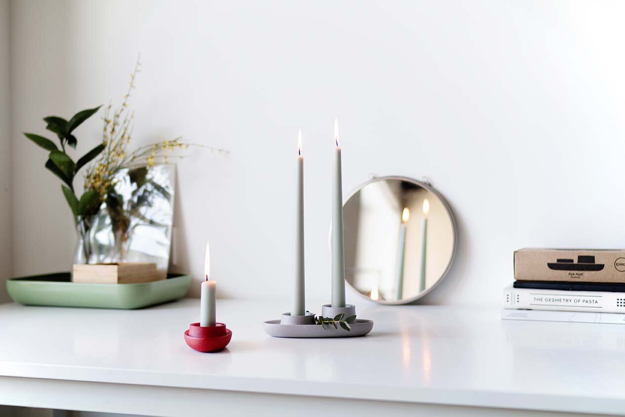 Aye Aye! is a family of rugged, round and bold cast iron candleholders inspired by the time of adventure and discovery, when the enthusiasm of the Industrial Revolution revealed the world to travellers and fortune seekers. The fleet is composed of four sizes – from a small tugboat with one funnel to a hefty steamship with four big ones. All navy-themed colours are available: red, blue, black and grey. Each funnel is designed to fit either a tea-light candle for cosy harbour lighting or a taper candle as a pillar of steam. Aye Aye! vessels can be combined in any size and number and create various themes that will be easy to adjust to different happenings and backgrounds.