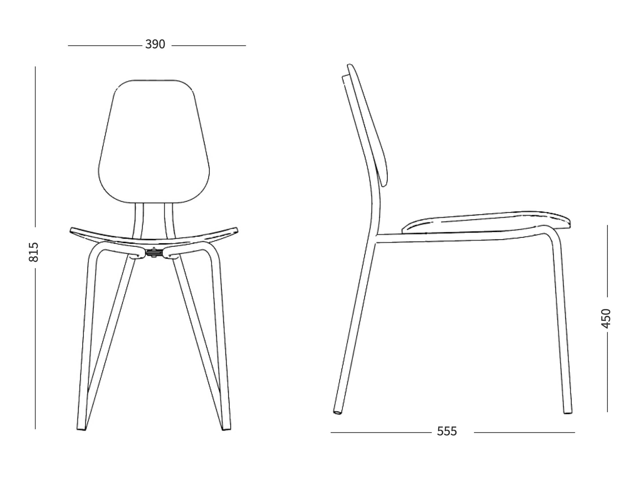 The inspiration behind the Hoya Chair comes from plants — their growth, development, and the opening of large, reassuring, and enveloping leaves. It is a small tribute to mother nature and her protectiveness but also a reminder of her fragility. Hoya chair consists of a black metal frame and veneered plywood backrest and seat, available in three finishes — natural oil, black or walnut paint. Compact Hoya chairs are also stackable and come in a flat pack, this way being sustainable in terms of transportation and packaging, too. Due to its urban look, the Hoya chair is ideal for relaxed atmosphere restaurants, lounges, or dining rooms. The creative character of this chair makes it also perfect for workshops and studios.