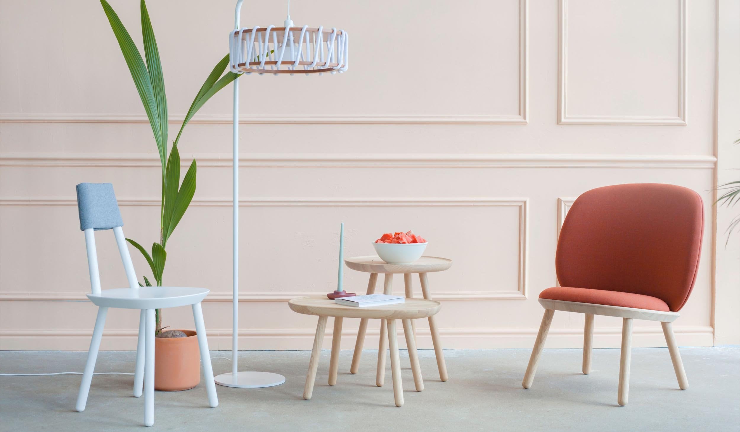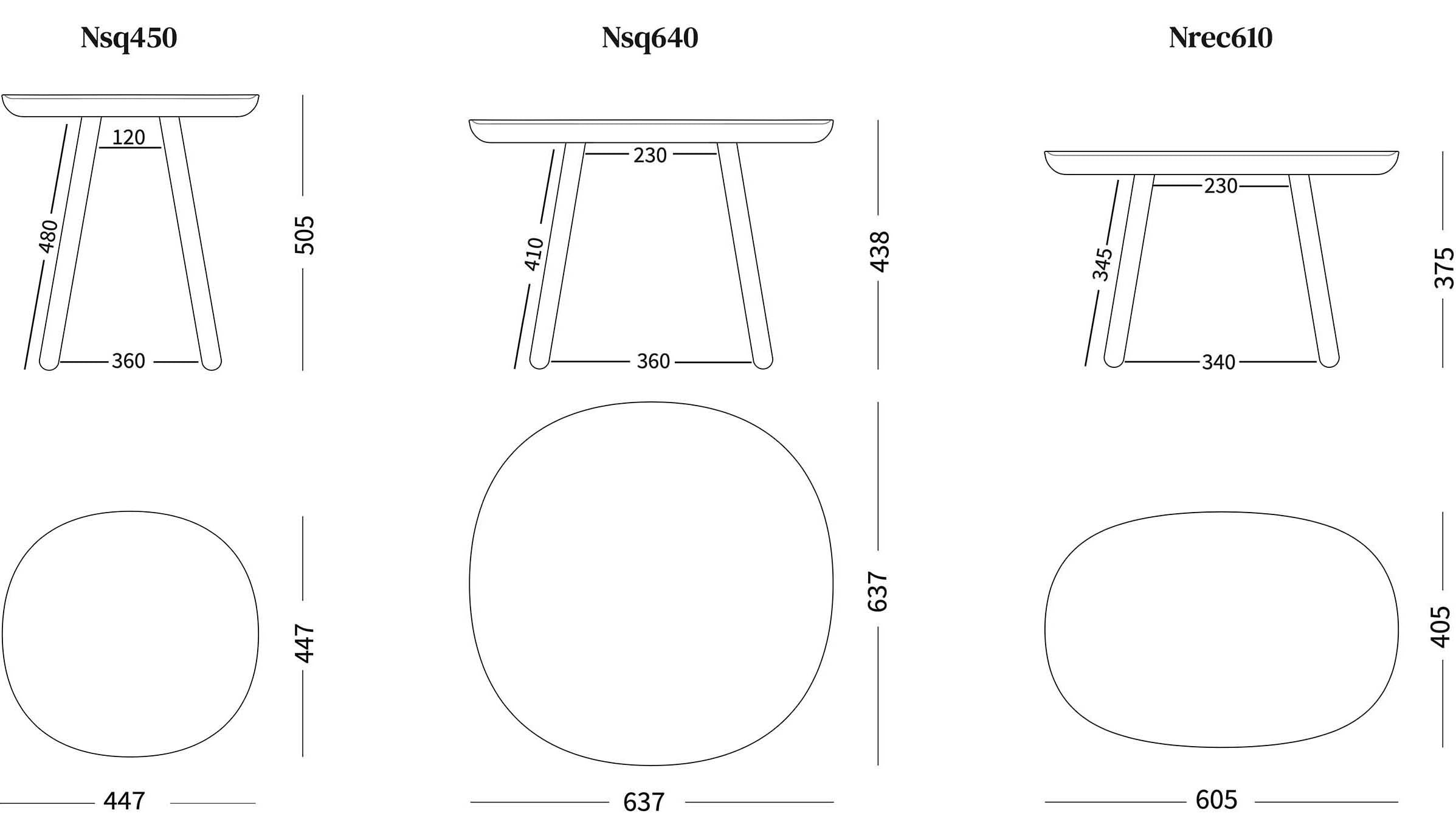 Naive side tables are available in 3 sizes, each carved out of a single piece of solid ash. A form in between a square and a circle creates a soft and welcoming appearance and will easily adapt to any type of room. The tables can be easily assembled by just screwing the legs in. The tables work well on their own, or all three together.