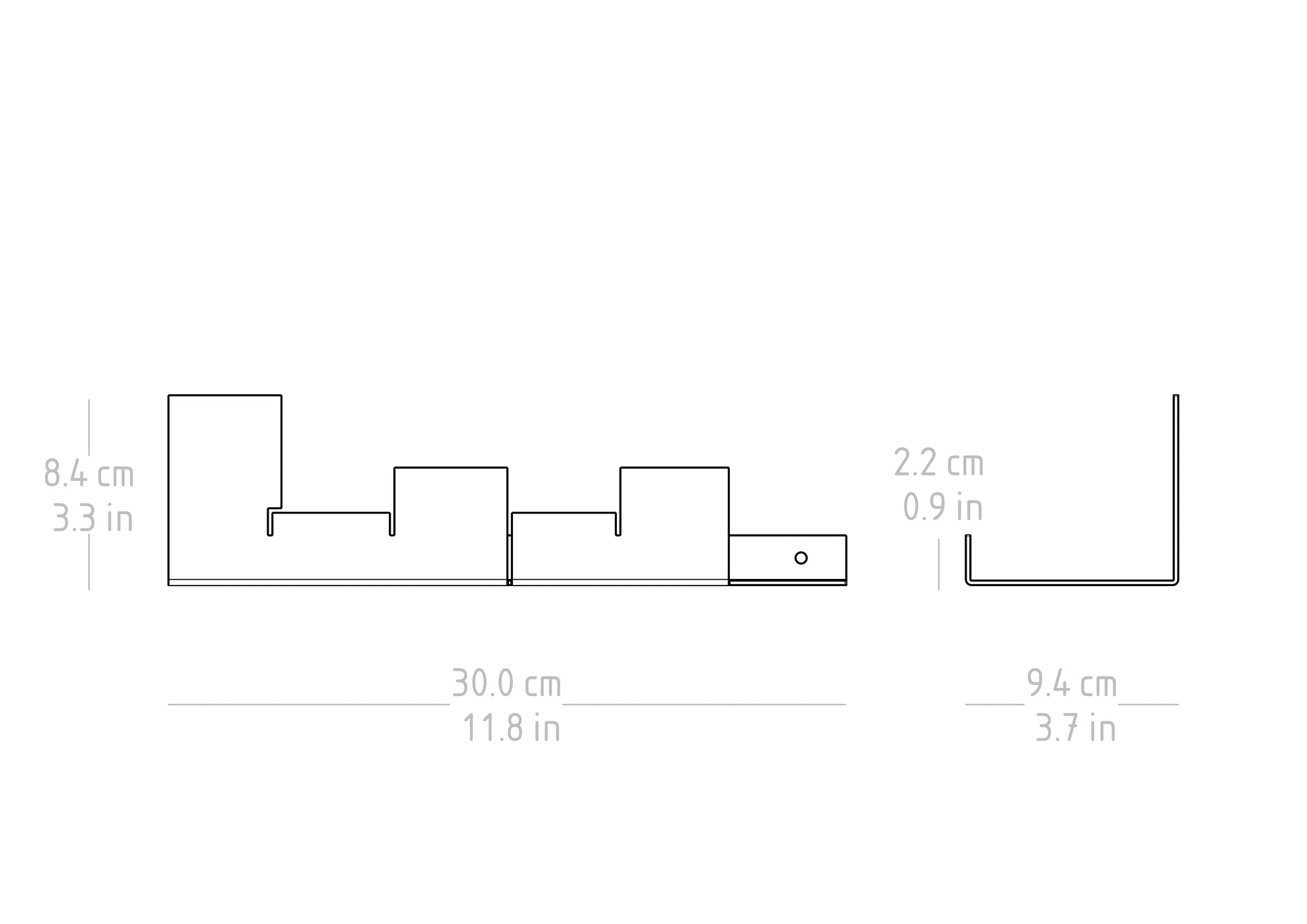EMKO team in collaboration with designer Etienne Blondel created decorative floating shelf NVMD. Name reflects the idea of something small and simple yet elegant to store tiny personal things. While looking simple and light, it comes in a very smart and innovative design which allows us to produce the shelves with low waste production. This intelligent solution enables to cut two perfect pieces from one sheet of steel.