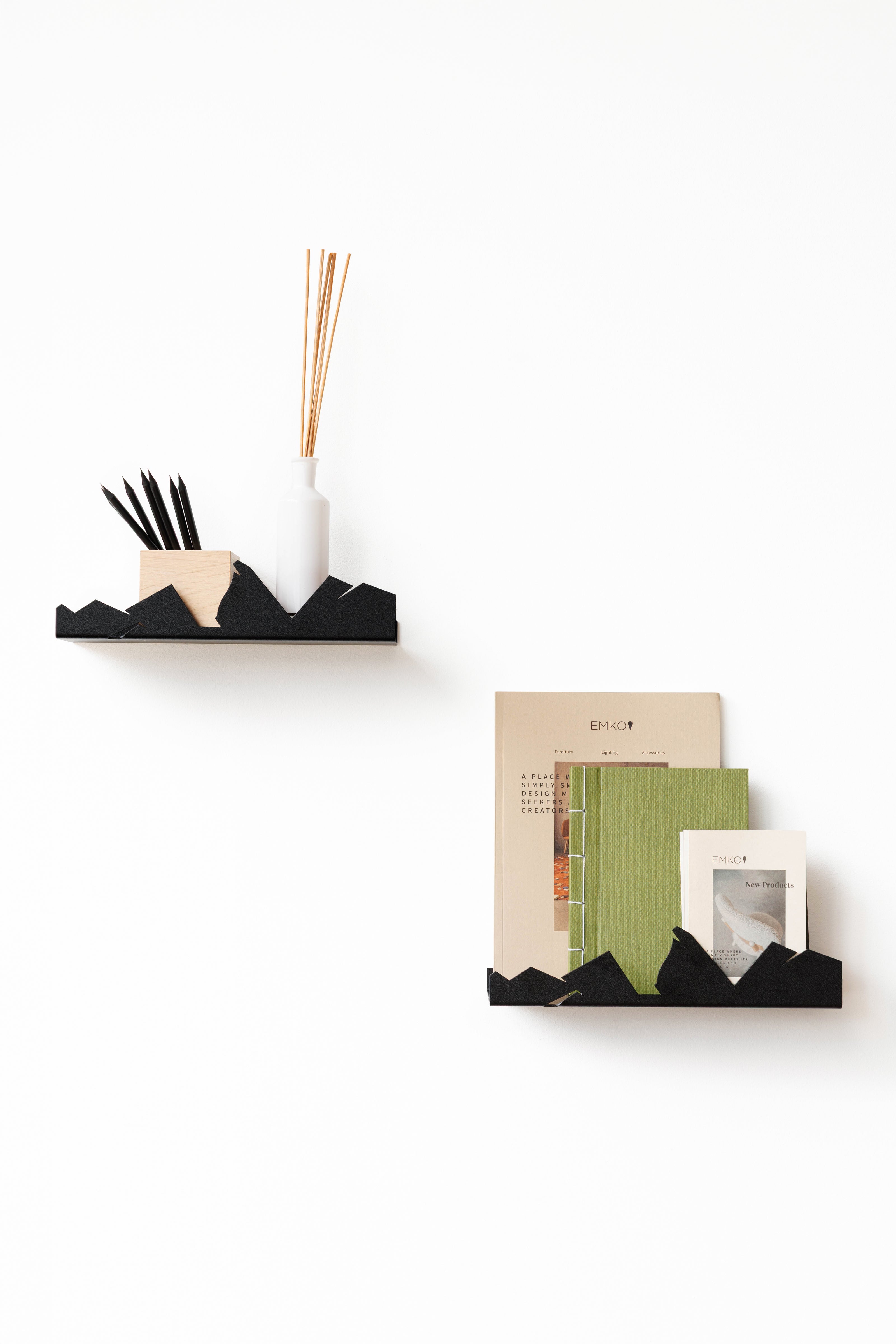 The NVMD metal shelf comes in three vivid silhouettes: lively city, dreamy clouds and adventurous mountains. Bringing to your space beautiful fusion of industrial and minimalistic design. While putting different shapes together or choosing few in one favourite silhouette you will have a scenic horizons on the wall and a smart storage solution.