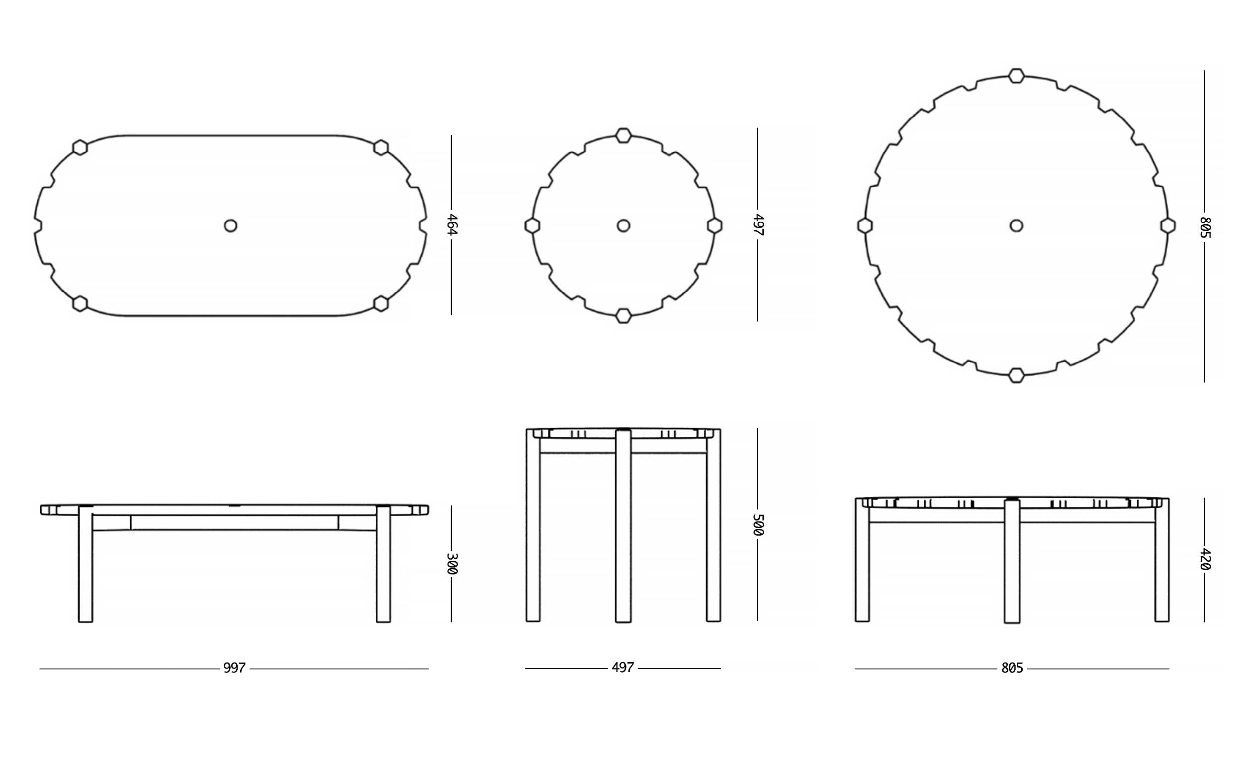Pinion is a collection of coffee and side tables inspired by a round gear. The starting point for this project comes from observing mechanical gears in different artefacts.